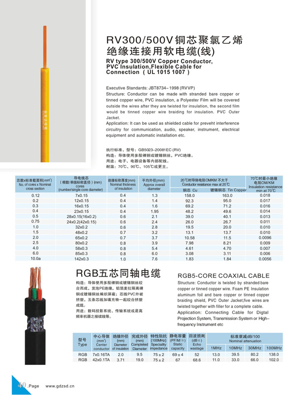 RV300-500V铜芯聚氯乙烯绝缘连接用软电缆(线)