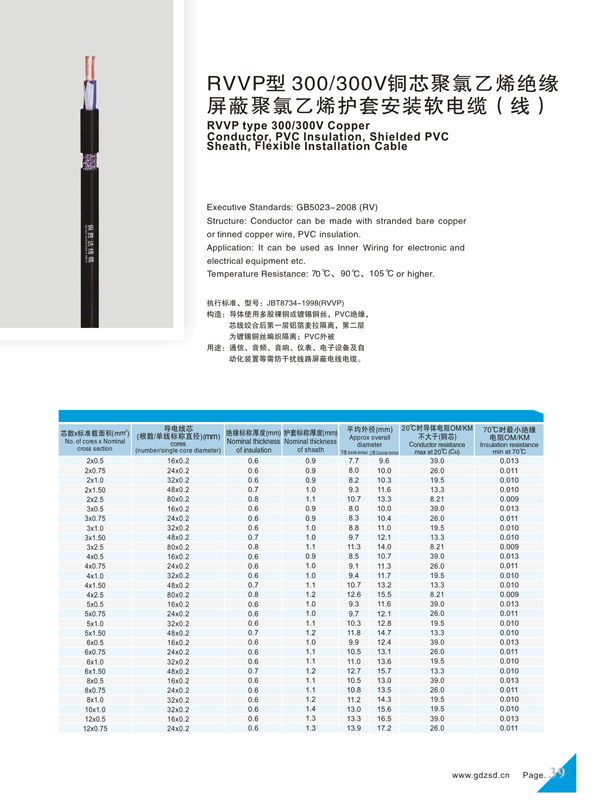 RVVP型300-300V铜芯软电缆(线)