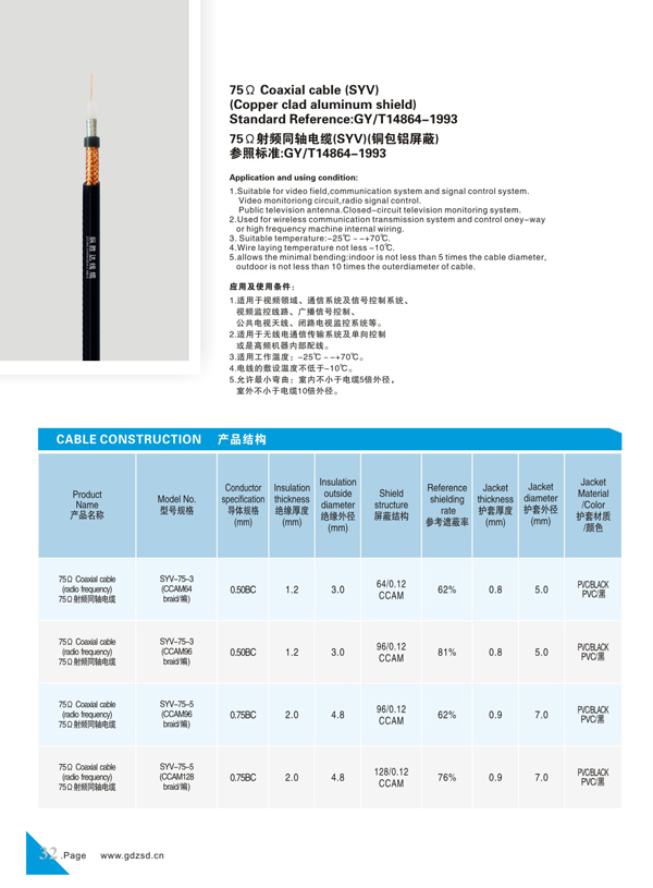 射频同轴电缆(SYV)(铜包铝屏蔽)